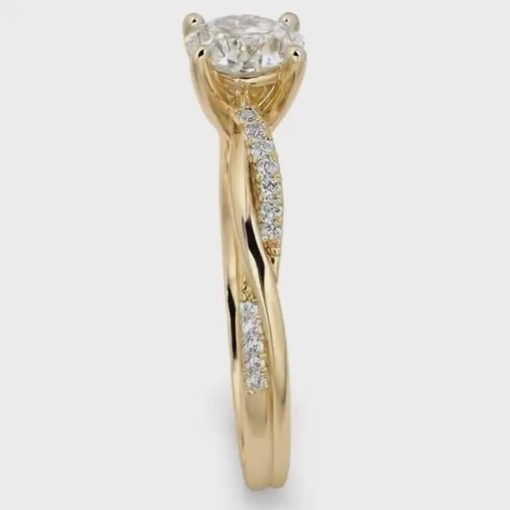 Elegant and modern, this twisted band represents two lives intertwined in perfect harmony. The interlacing design combines a smooth, polished finish with a row of 36 round cut diamonds that add a refined sparkle from every angle. Expertly crafted for comfort and durability, this setting offers a timeless foundation ready to showcase the center stone of your choice.