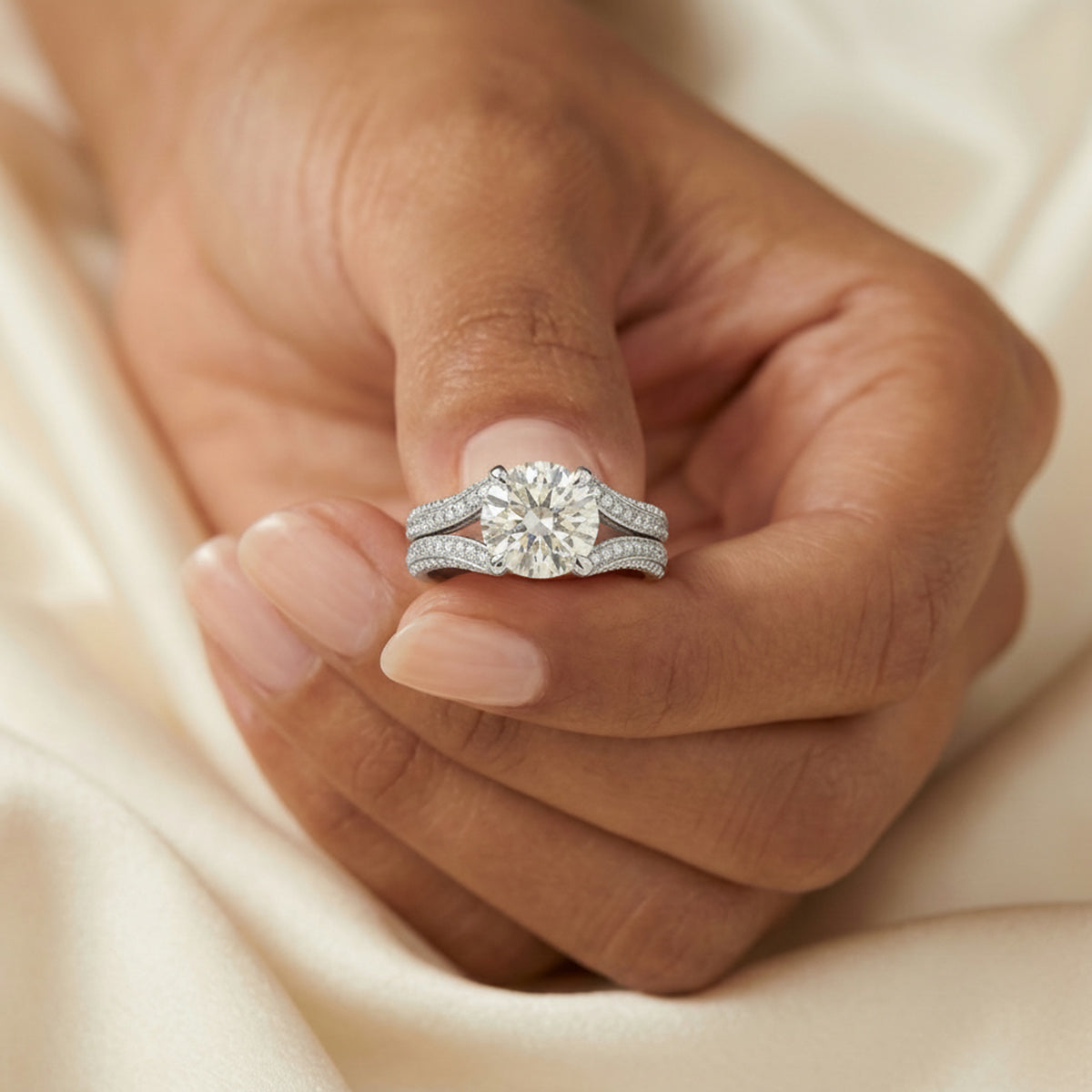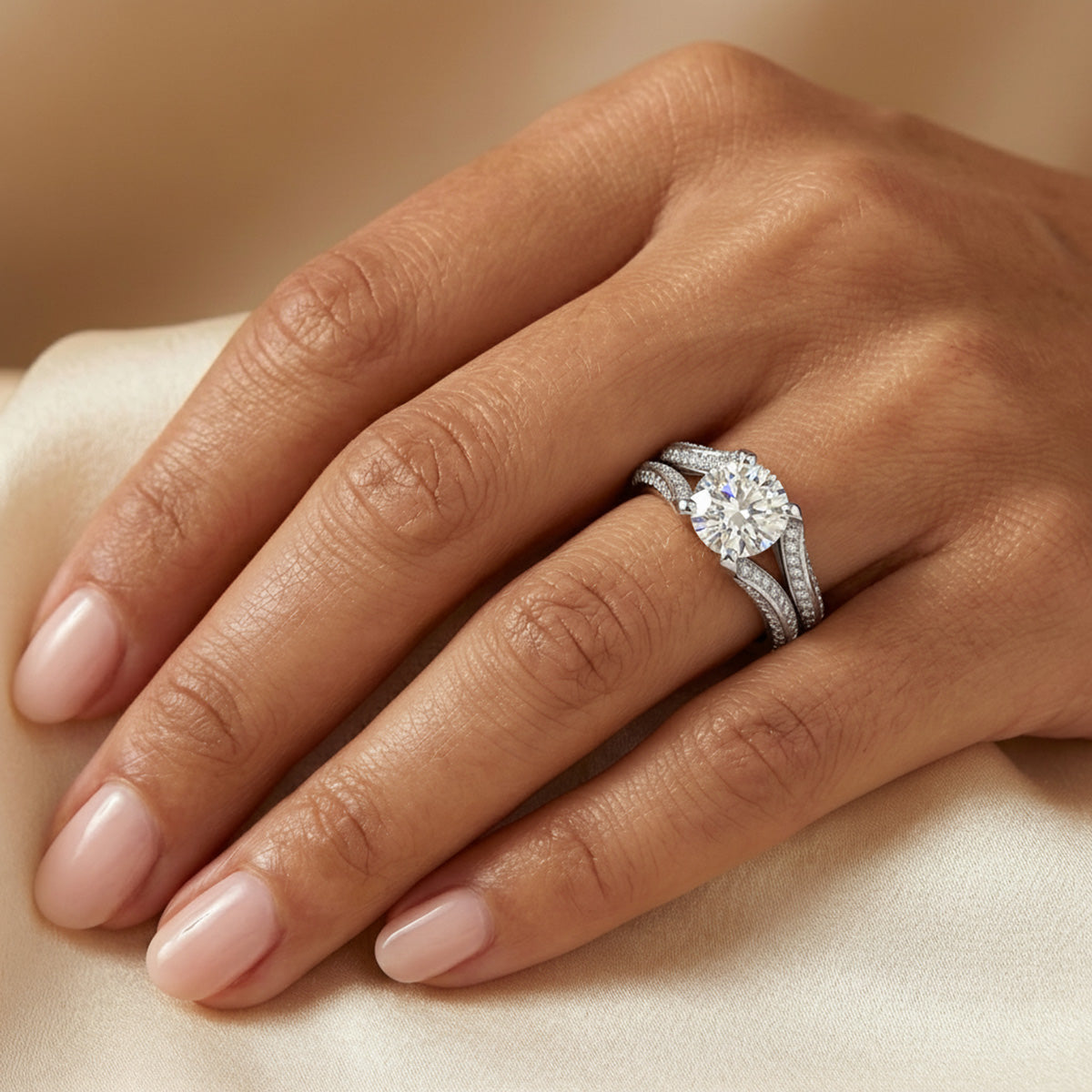 - Band style: Pavé split-shank design with smooth, continuous flow